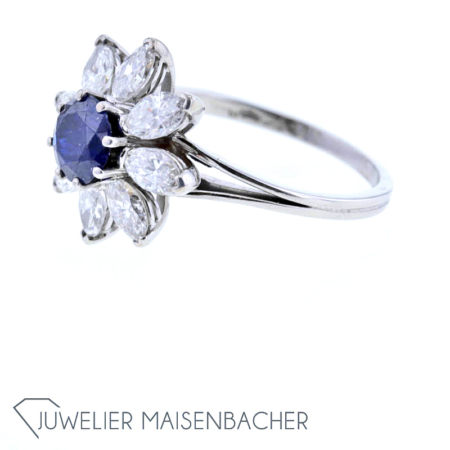 Wunderschöner Ring mit Diamanten und Saphir Blume Gold
