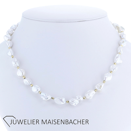Collier mit wunderschöner Keshi-Perle und Goldzwischenteilen