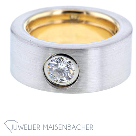 Massiver moderner Solitär-Ring mit Brillant Gold