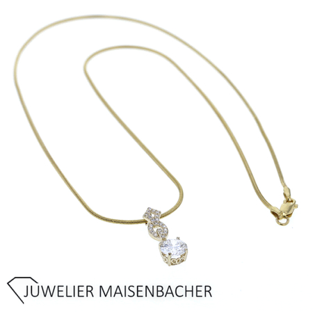 Schlangenkette mit Solitäranhänger in 1,08 ct in 750er und 585er
