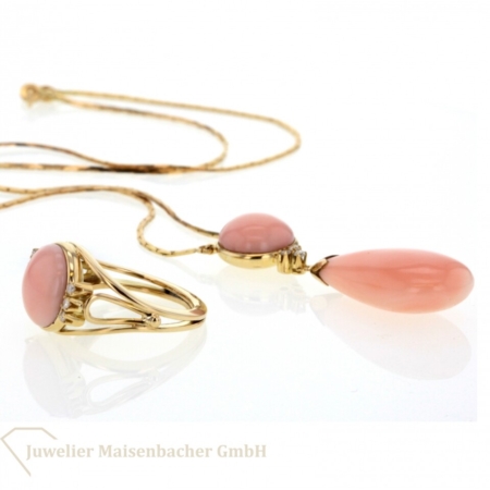 Schmuckset Collier und Ring mit Brillant und Koralle Gold