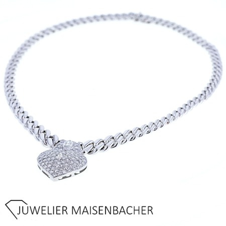 Diamant Brillant Herz Collier Gold Pavee gefasst