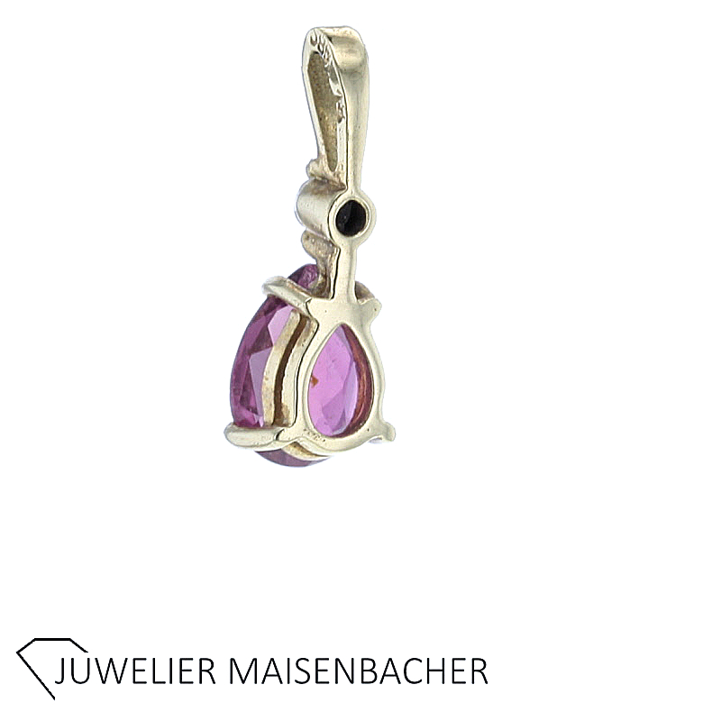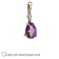 Wunderschöner Amethyst-Diamant-Anhänger in leuchtenden Farben. Oese besetzt 3 natürlichen Diamanten im Brillantschliff insgesamt ca. 0,03 ct. Farbe: Wesselton, Weiß (H) Reinheit: VS1-VS2 Amethyst ca. 3,8 ct. facettiert im Emerald Cut ca. 12,0mm x 9,9mm Bruttogesamtgewicht: ca. 4,4 Gramm