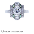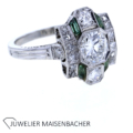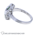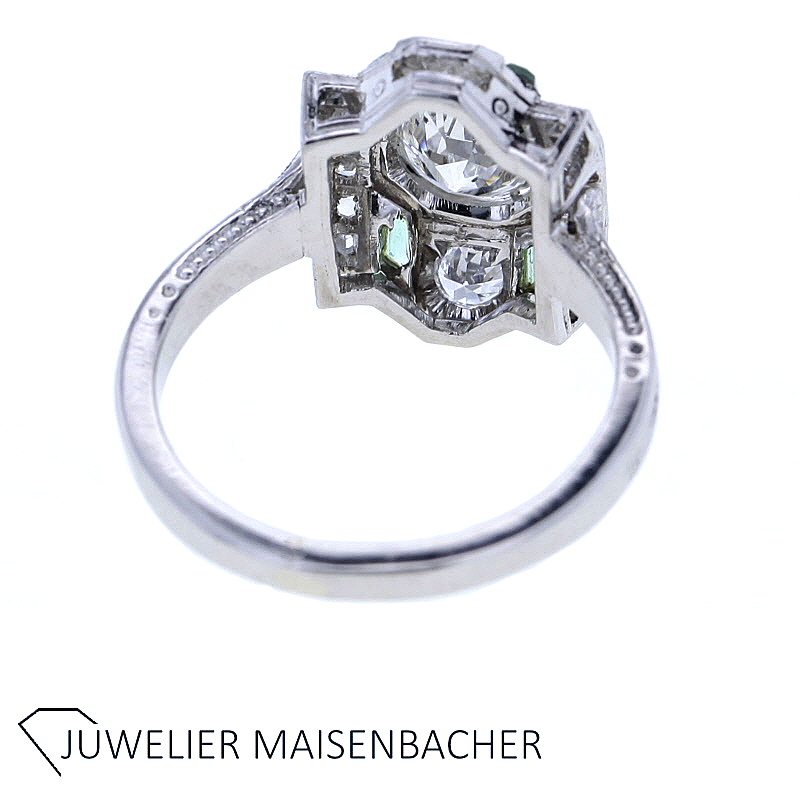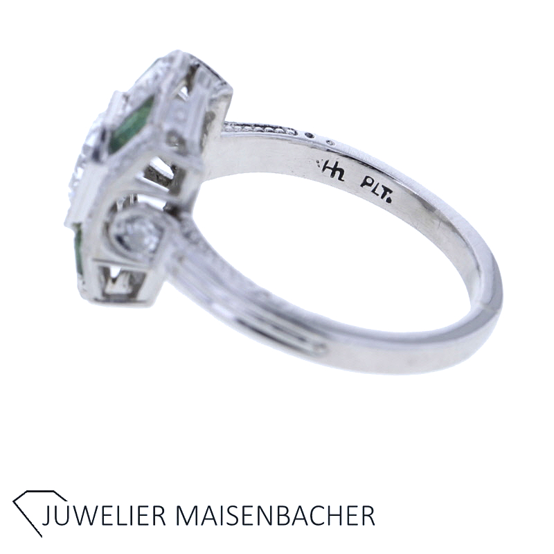 Art Deco Ring mit Diamanten und Turmalinen in 900er Platin – Handgefertigter Antik-Schmuck mit unverwechselbarem Charakter