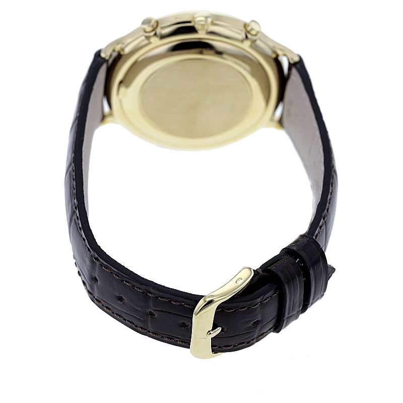 Gehäuse: Gelbgold, rund, mit klassischer Linienführung, die Wärme des Gelbgolds versprüht zeitlose Eleganz