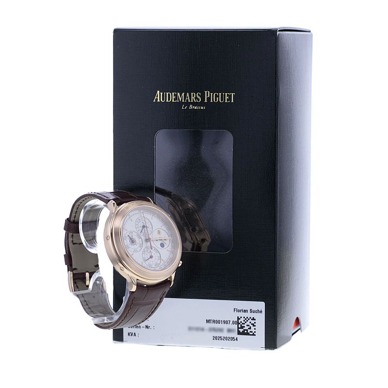 Die Audemars Piguet Huitième Perpetual Calendar Ref. OR25695 ist eine herausragende Verbindung aus klassischem Roségold und moderner Uhrwerkstechnologie. Mit Gehäuse, Lünette und Schließe aus 18 kt Roségold, einem silbernen Zifferblatt und einem braunen Kroko-Armband steht diese Uhr firm und stilbewusst am Handgelenk. Der ewige Kalender sowie der Chronograph machen sie zu einem Meisterwerk der Haute Horlogerie – ideal für Sammler, Liebhaber exquisiter Mechanik und anspruchsvolle Träger, die Luxus mit Zuverlässigkeit suchen.