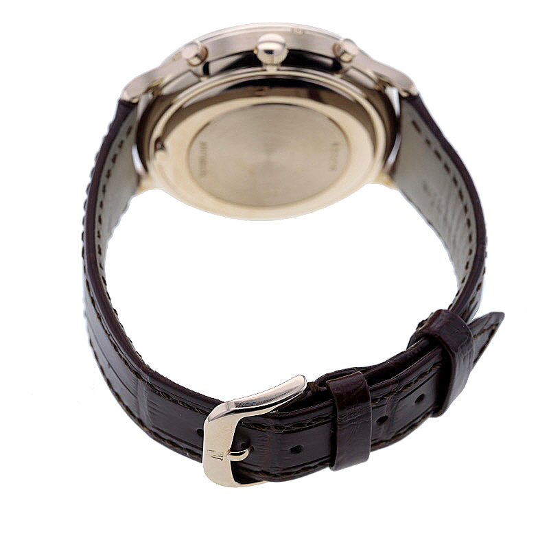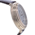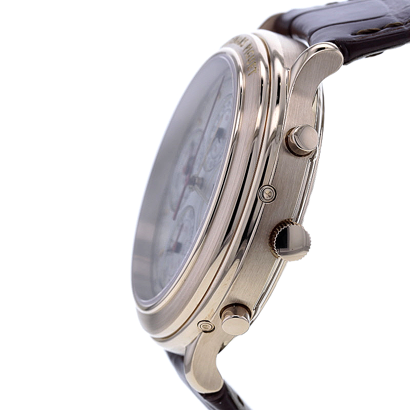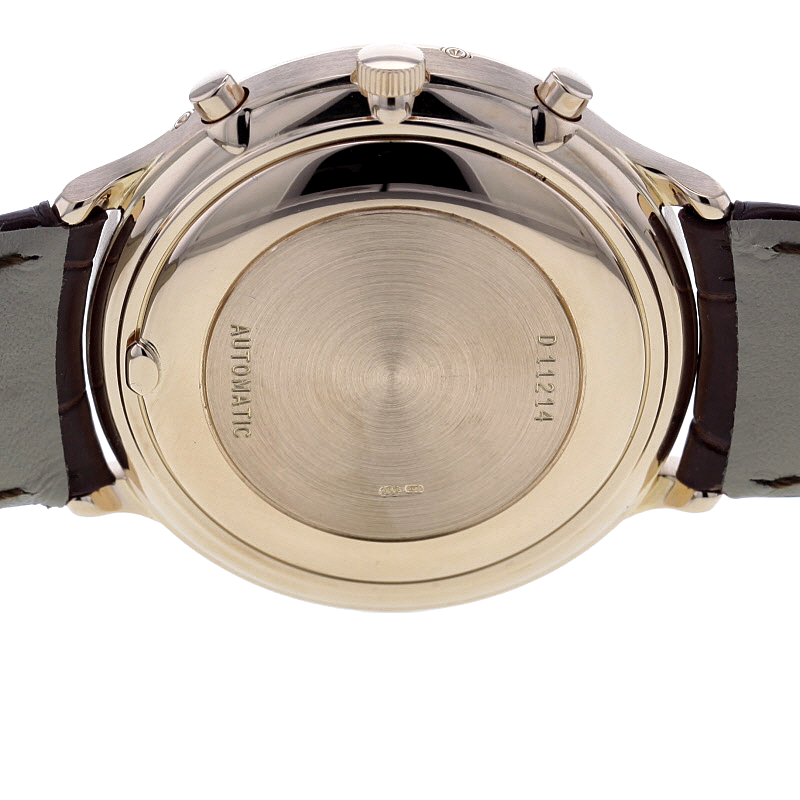 Der 40-mm-Kronenrad der Huitième-Serie bietet eine ausgewogene Präsenz am Handgelenk. Das silbrige Zifferblatt kontrastiert mit dem warmen Glanz des Roségoldgehäuses und entfaltet eine zeitlose Eleganz, die sowohl formelle Anlässe als auch den gehobenen Alltag gekonnt ergänzt. Die Braunfärbung des Kroko-Armbands in Kombination mit der 18 kt Roségold-Schließe unterstreicht den luxuriösen Charakter der Uhr, während das automatische Kaliber 2226/2839 Präzision und Zuverlässigkeit garantiert. Der Ewige Kalender bleibt dank der fein abgestimmten Mechanik stets korrekt – inklusive Mondphase, Monats- und Datumskorrekturen, sodass Sie sich auf Stil und Funktion verlassen können.