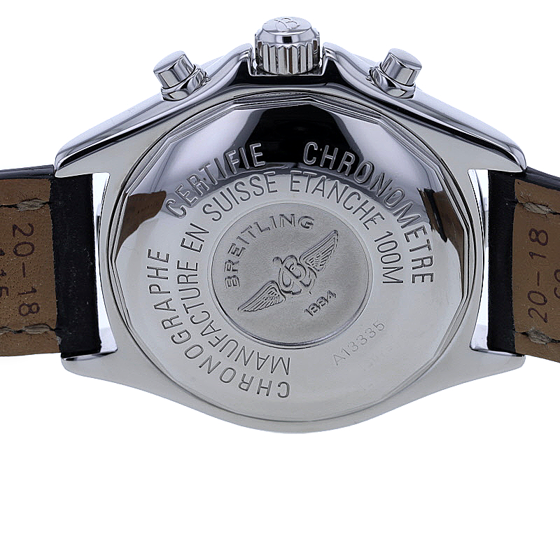Im Inneren arbeitet das bewährte Automatikwerk Kaliber 7750, ein legendäres Chronographenwerk, das für Zuverlässigkeit, Präzision und Langlebigkeit steht. Mit 25 Steinen, einer Frequenz von 28.800 A/h und einer Gangreserve von ca. 48 Stunden bietet diese Breitling eine technische Substanz, die Kenner und Sammler gleichermaßen überzeugt. Die Chronographenfunktion unterstreicht ihren funktionalen Anspruch und macht sie zu einem markanten Begleiter mit professionellem Charakter.