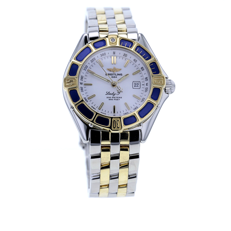 Zusammenfassung: Die Breitling Lady J D52065 vereint sportlichen Charakter mit edler Farbgebung in Gold/Stahl, einem weißen Zifferblatt und einem komfortablen Pilotarmband. Ideal für Damen, die Wert auf präzise Quarztechnik, zeitlose Ästhetik und Alltagstauglichkeit legen. Für weitere Detailfragen oder zusätzliche Bilder bin ich gerne behilflich.