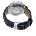 Das Armband besteht aus hochwertigem Leder in Schwarz, mit einer Dornschließe aus Edelstahl – zweites Gehäuse, das ästhetisch und funktional perfekt harmoniert. Die Stegbreite beträgt 24 mm, wodurch das Band sicher und komfortabel am Arm sitzt. Das Glas besteht aus Saphirglas, das Kratzer zuverlässig widersteht. Die Wasserdichtigkeit wird mit 3 ATM angegeben, was Alltagsaktivitäten schützt, jedoch kein Tauchen ermöglicht.