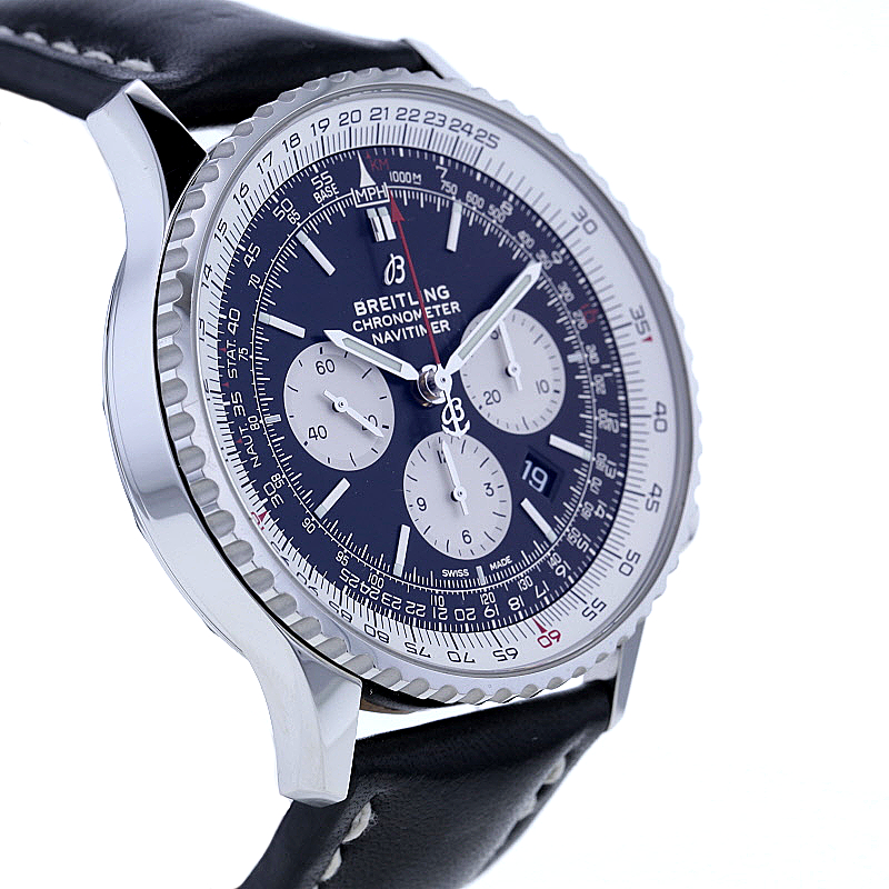 Lieferumfang und Zustand: Box und Papiere liegen vor; Zustand 1 (sehr gut) mit lediglich minimalsten, kaum sichtbaren Gebrauchsspuren. Eine Uhr aus der Navitimer-Reihe verkörpert nicht nur Zeitmessung, sondern auch die Leidenschaft des Fliegens und den Sinn für Präzision.