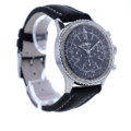 Das runde Gehäuse aus Edelstahl misst markante 41 mm bei einer Höhe von 13,7 mm und verleiht der Uhr eine kraftvolle Präsenz am Handgelenk. In Verbindung mit dem schwarzen Zifferblatt entsteht die unverwechselbare, technisch geprägte Optik, die die Navitimer seit Jahrzehnten zu einer der berühmtesten Fliegeruhren der Welt macht. Die fein gegliederte Skalierung und der integrierte Rechenschieber unterstreichen den professionellen Anspruch dieses Modells und verleihen ihm jene faszinierende Komplexität, die Sammler und Kenner besonders schätzen.