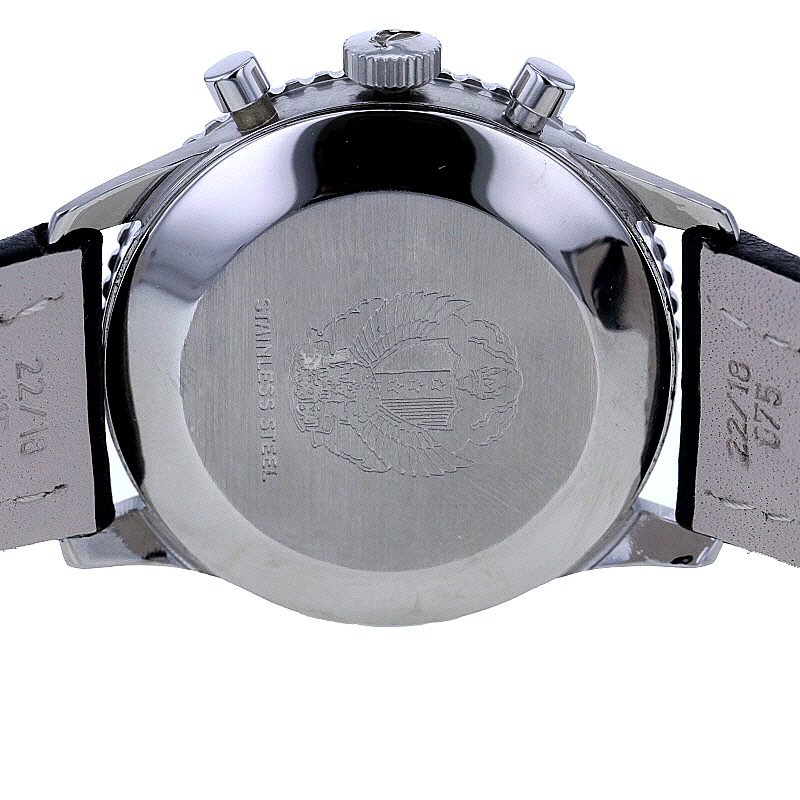 Besonders hervorzuheben ist die Wappengravur auf der Rückseite, die diese Breitling zu einem außergewöhnlichen Sammlerstück mit unverwechselbarer Identität macht. Der Zustand 1 (sehr gut) spricht zusätzlich für die Qualität dieses seltenen Exemplars. Auch ohne Box und Papiere überzeugt diese Navitimer durch Historie, Authentizität und ikonisches Design auf höchstem Niveau.