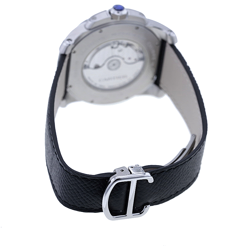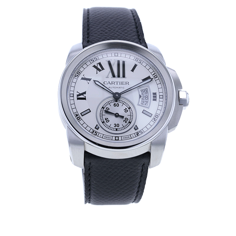 Diese Calibre De Cartier verkörpert zeitlose Wertigkeit mit einer sportlichen Note. Das silberne Zifferblatt, das markante Edelstahlgehäuse und das hochwertige Schwarze Ledersband vermitteln Eindruck von Luxus, der jeden Anlass elegant begleitet – vom geschäftlichen Meeting bis zum formellen Abend.