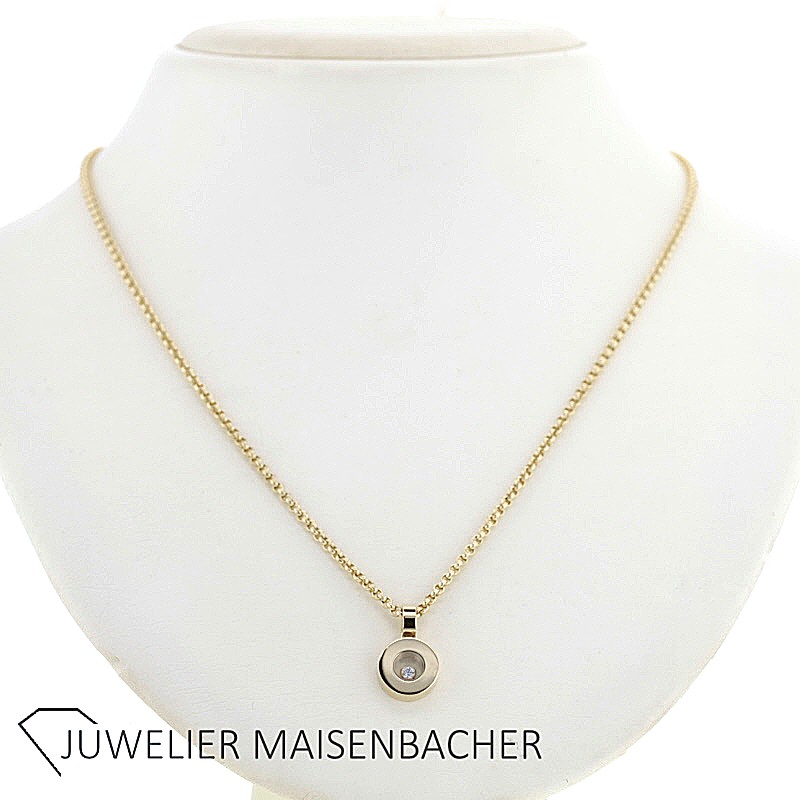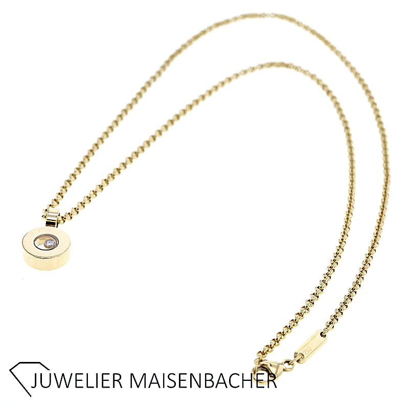 Chopard Collier mit Anhänger Happy Diamonds 750/- Gelbgold natürlicher Diamant im Brillantschliff 0,05 ct Anhänger Durchmesser ca.10mm Bruttogesamtgewicht: 12,2 gr. Kettenlänge: ca. 42 cm Lieferumfang: Chopard Box