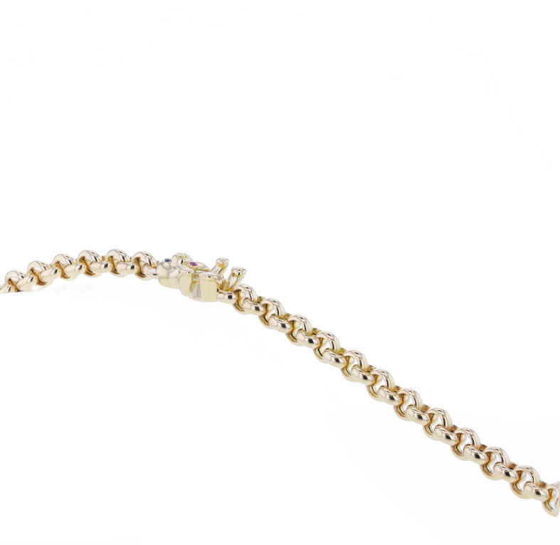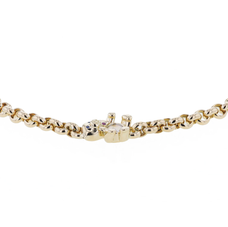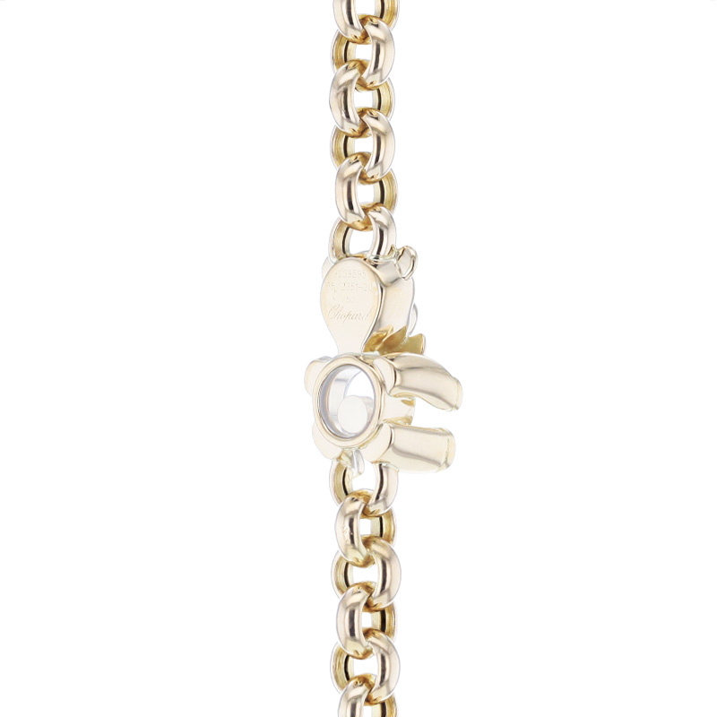 Dieses außergewöhnliche Chopard Armband vereint verspieltes Design mit hochwertiger Goldschmiedekunst und sorgfältig ausgewählten Edelsteinen. Gefertigt aus edlem 750er Gelbgold, überzeugt es nicht nur durch seine warme, luxuriöse Ausstrahlung, sondern auch durch seine solide Verarbeitung und ein angenehmes Tragegefühl. Mit einer Länge von ca. 20,5 cm legt es sich geschmeidig um das Handgelenk und wirkt dabei präsent, ohne aufdringlich zu sein. Das Gesamtgewicht von etwa 17,3 g unterstreicht zusätzlich die Wertigkeit dieses Schmuckstücks.