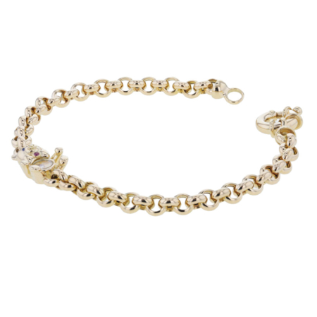 Die gleichmäßig gearbeiteten Erbsenkettenglieder sorgen für eine harmonische Optik und eine hohe Stabilität. Sie führen elegant zu dem besonderen Highlight des Armbands: einem detailreich gestalteten Bärenanhänger. Dieses charmante Element verleiht dem Schmuckstück eine individuelle Note und hebt es deutlich von klassischen Armbändern ab.