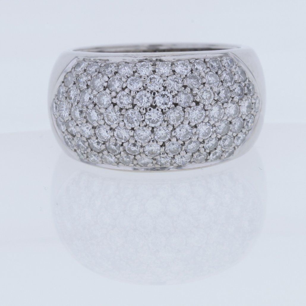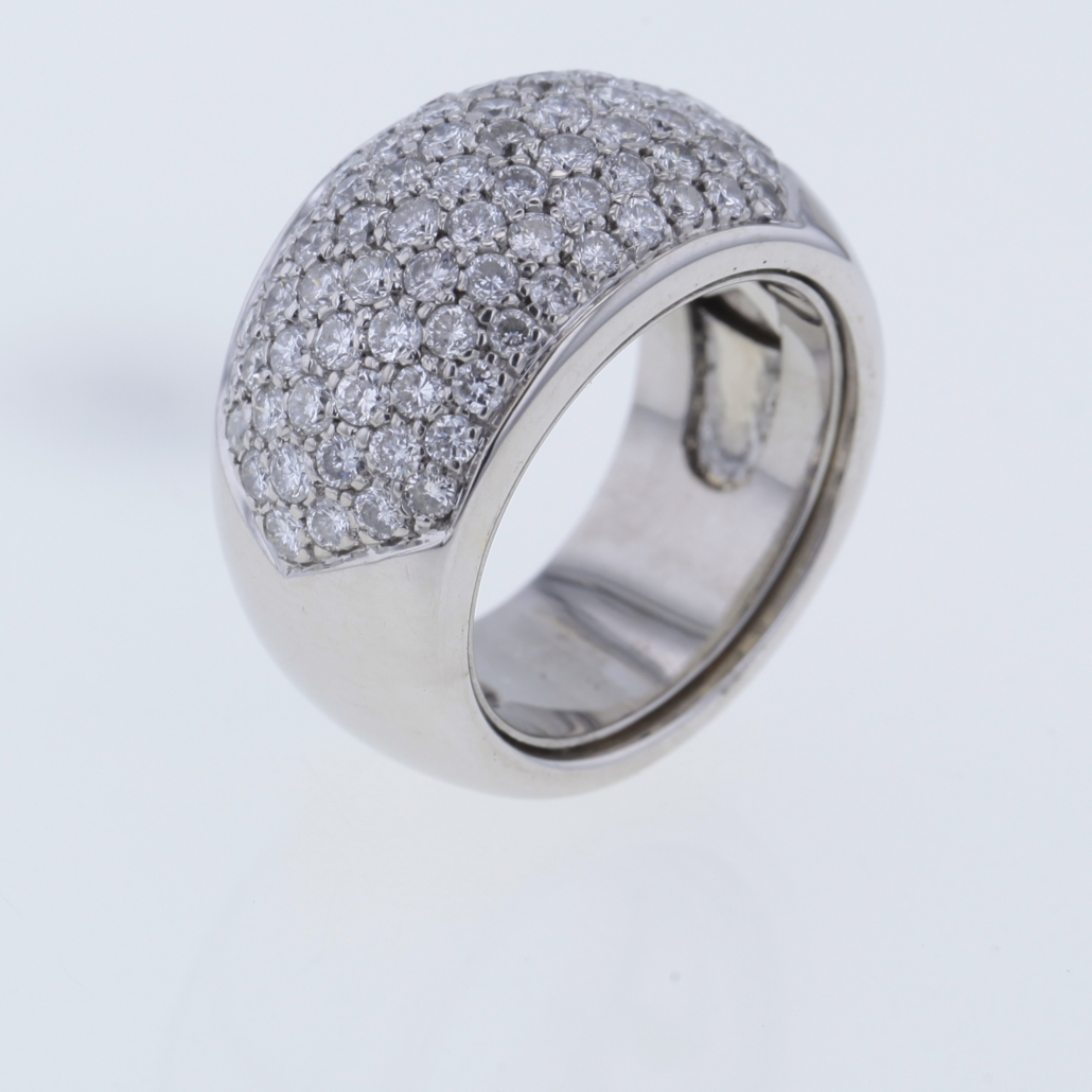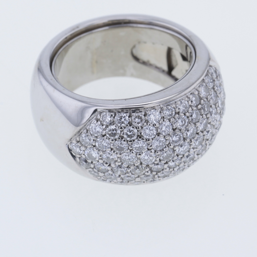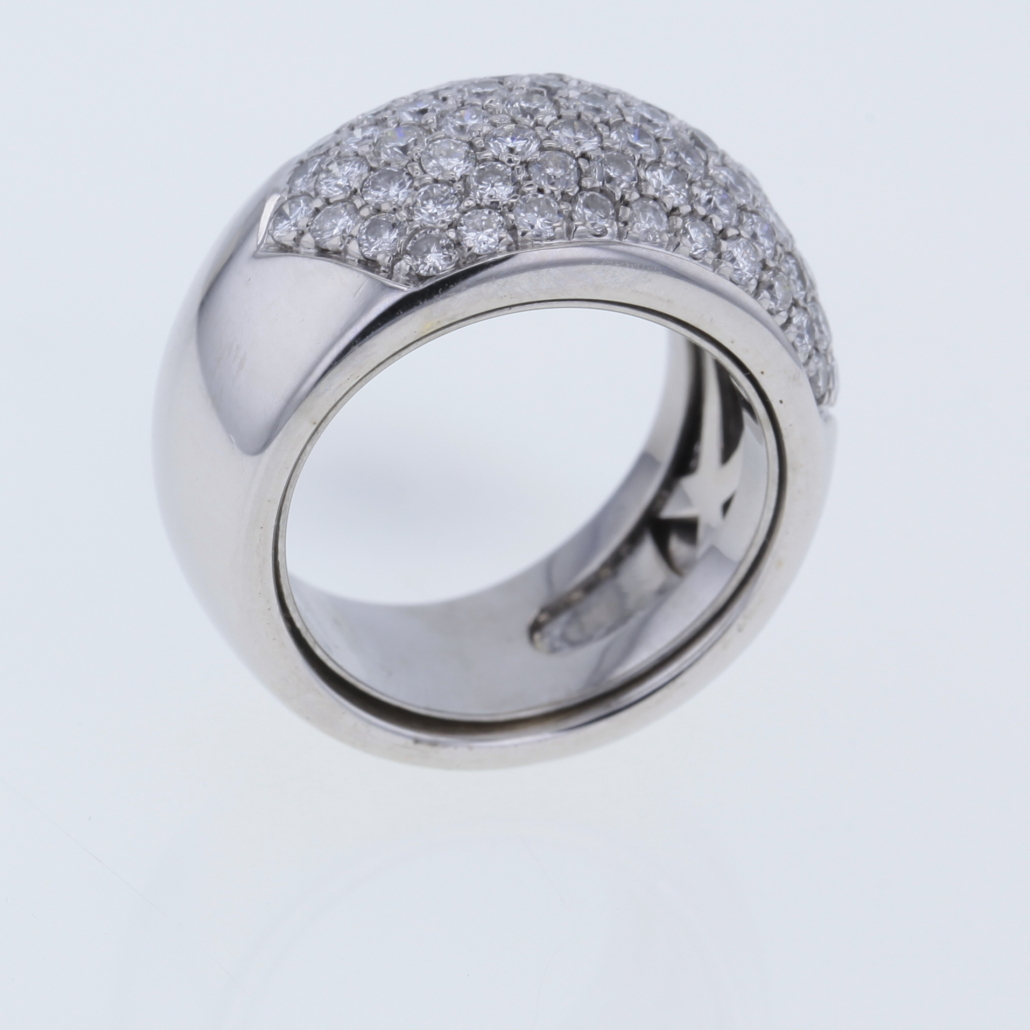 Dieser Ring ist ein wahrer Blickfang, ein absoluter Eye-Catcher mit funkelnden Brillanten. Gefertigt in 750/- Weißgold mehreren Diamanten im Brillantschliff Pavé gefasst Insgesamt ca. 2,10 ct Farbe: Wesselton, Weiß (H) Reinheit: VS – P Ringweite: 52 – 53 (à 16,5 – à 17) Ringschiene: ca. 13 mm – 9,5 mm Stärke Ringschiene: ca. 3 mm – 5,2 mm Ringkopf: ca. L: ca. 22,5 mm x B: ca. 13 mm Bruttogesamtgewicht: 20,6 Gramm Sie haben Fragen zu diesen einmaligen Schmuckstück, wir beraten Sie unverbindlich und individuell.