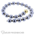 Wunderschönes Edelstein Collier Hämatit mit Goldschließe 750/- Gelbgold 23 anthrazit farbende Hämatit Kugeln hoch glänzend poliert à ca. 15,0mm durchbrochen mit goldenen Zwischenelementen àca. 6mm Gelbgold Kugel-Wechselschließe à 15,7mm Tragelänge 41cm Bruttogesamtgewicht: 108,7 Gramm Zur perfekten Kombination finden Sie die passenden Ohrhänger unter der Artikel Nummer OH10098271-170