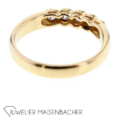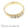 Eleganter Damen Ring mit Brillanten 585/- Gelbgold 5 natürliche Diamanten im Brillantschliff insgesamt: ca. 0.315ct Farbe: Wesselton, weiß (H) Reinheit: VS1-VS2 Ringweite: 58,5 (Ã18,8) Maße Ringschiene: ca. 3,3 mm x 1,3 mm Bruttogesamtgewicht:Â 4,24 Gramm
