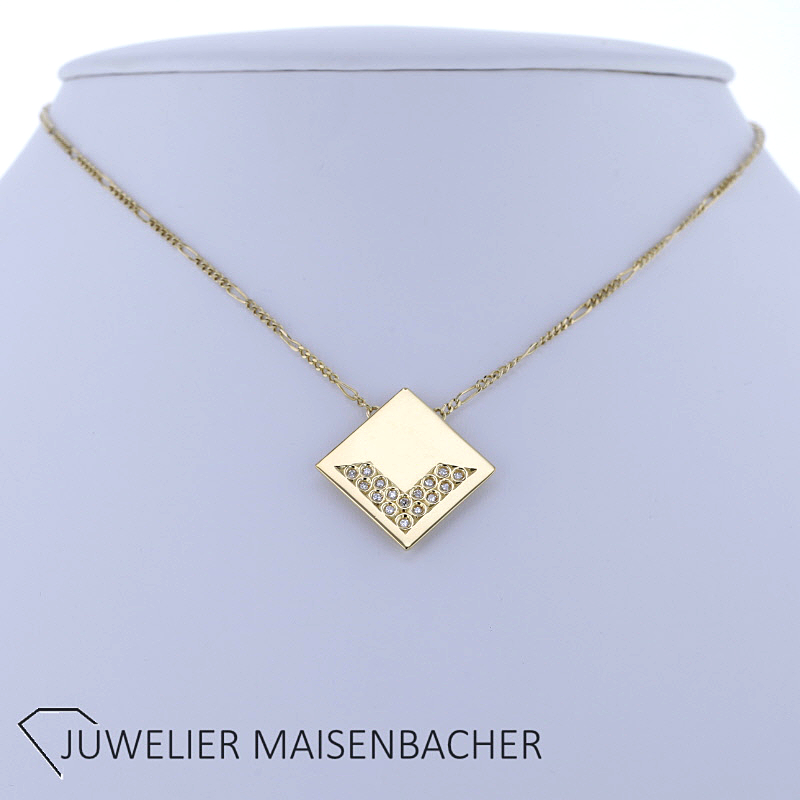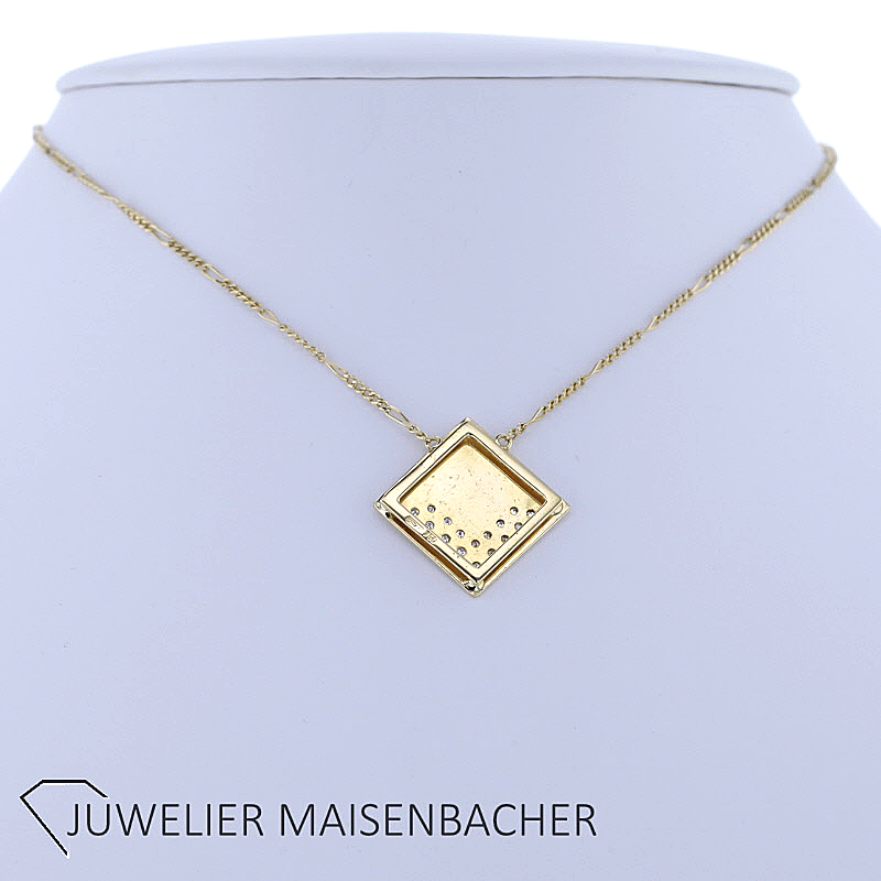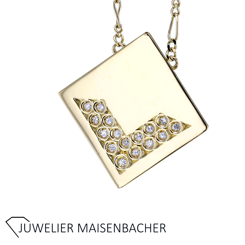 Ein Ausdruck von Individualität, Qualität und zeitloser Schönheit. Die Kombination aus handgefertigtem Anhänger, edlem 750er Gelbgold und fein abgestimmten Diamanten macht es zu einem besonderen Begleiter für viele Jahre und zu einem wertvollen Geschenk für einen besonderen Menschen – oder für sich selbst.
