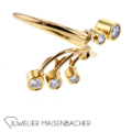 Goldschmiede Engelhardt-Nuss Außergewöhnliches Design Ring mit Brillanten 900/-Gelbgold 5 Diamanten im Brillantschliff insgesamt ca. 0,37ct. Frarbe: Top Wesselton (G) Reinheit: Lupenrein (IF) Ringweite: ca. 53 (Ã 16,9) Ringschiene: ca. ca. 1,75 mm Ringkopf: ca. 8,66mm -14,82mm Bruttogesamtgewicht: 4,7 Gramm Haben Sie Fragen zu diesen exklusiven handgefertigten Designer Ring, rufen Sie uns gerne an oder schreiben uns eine Mail