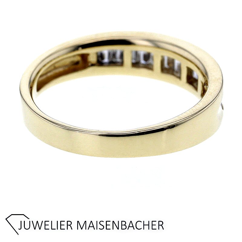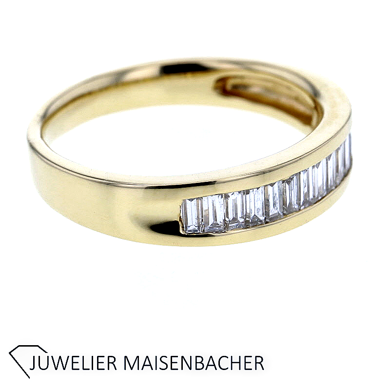 Im Mittelpunkt dieses Halbmemory-Rings stehen 14 sorgfältig ausgewählte, natürliche Diamanten mit einem Gesamtgewicht von ca. 0,50 Karat. Der edle Baguetteschliff verleiht den Steinen eine klare, elegante Ausstrahlung mit faszinierenden Lichtreflexen. Durch die geradlinige Schliffform entsteht ein besonders modernes, ruhiges Funkeln – stilvoll, präzise und außergewöhnlich.