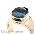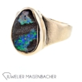 UNIKAT Handgefertigter Ring mit einmaligen Boulder Opal 585/- Gelbgold Der Boulder Opal ist immer mit dem braunen Muttergestein verbunden und macht ihn in Farben des Regenbogens so außergewöhnlich. Maße Opal leicht oval: ca. 14,5 x 8,9 mm Ringweite: 55 (à 17,5) Ringkopf ca. 17 x 11mm Ringschiene im Verlauf: ca. 3,5-8,2 mm x 1,0 mm Bruttogesamtgewicht: 10,2 Gramm