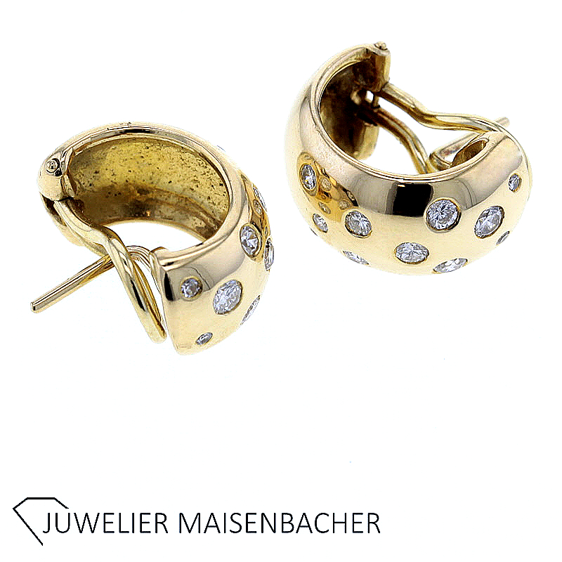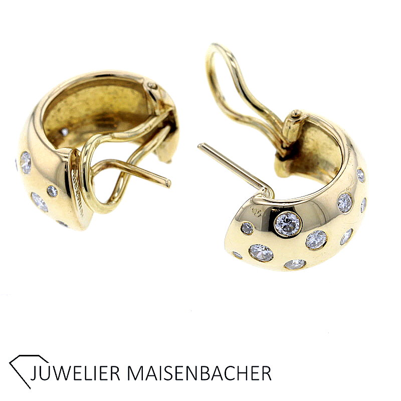 Diese Halbcreolen verbinden klassische Eleganz mit moderner Schmuckikonenbildung. Gefasst in hochwertigem 750er Gelbgold, begleiten sie das Ohr mit einem Hauch zeitloser Würde und funkelnder Klarheit. Der Diamantenbesatz verleiht dem Design eine dezente, aber verführerische Brillanz, während der Omegabügel sicheren Halt und angenehmen Tragekomfort garantiert.