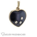 Klassischer Herz-Anhänger *Onyx und Diamanten* gefertigt aus 585/- Gelbgold, geziert mit 3 Diamanten im Brillantschliff. insgesamt ca. 0,ca. 0.240ct Farbe: Wesselton Reinheit: VS2-SI2 Maße Herz ca.: 20,25x 18,42mm Tragelänge mit Oese ca. 25,60mm Bruttogesamtgewicht: ca. 3,74 Gramm