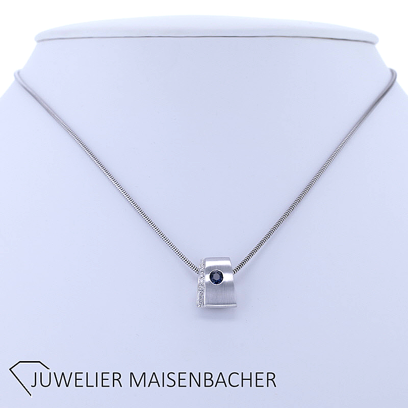 Schlangenkette mit Anhänger – Saphir & Brillanten in 585er Weißgold
