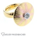 Handgefertigter Design-Ring, UNIKAT *Lindemann Schmuckgestaltung* 750/-Gelb-Rot-Weißgold 1 natürlicher Diamant im Brillantschliff ca. 0,50 ct Farbe: Getöntes Weiß (S) Reinheit: VSI Ringgröße: 51,5 Ã16,5 Massive Ringschiene: ca 5,9 mm x 3,4 mm Bruttogesamtgewicht: ca 24,7 Gramm mit Zertifikat Lindemann Schmuckgestaltung, Saarlouis Sie haben Fragen zu diesem Unikat, wir beraten Sie gerne individuell und unverbindlich