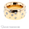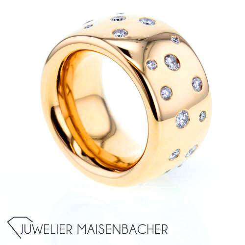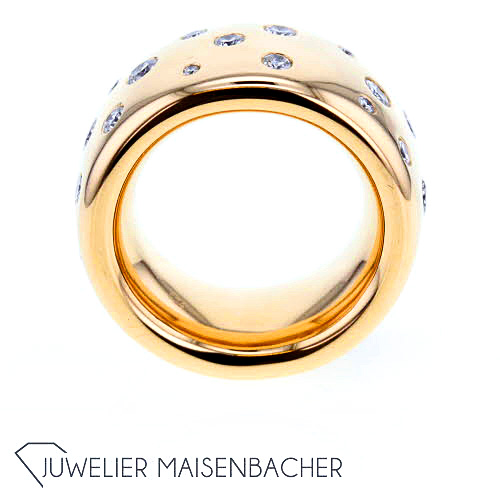 Massiver breiter Statement-Ring mit Brillanten 750/- Gelbgold 30 Diamanten im Brillantschliff 1 Diamant im Achtkantschliff insgesamt ca. 1,84 ct Farbe: Top Wesselton, Feines Weiß (G) Reinheit: VS2-SI2 Ringweite: 59 (Ã18,8) Maße Ringschiene: ca. 14,6 mm Bruttogesamtgewicht ca. 23,5 Gramm Sie haben Fragen zu diesen klassischen breiten Ring, wir beraten Sie unverbindlich und individuell