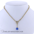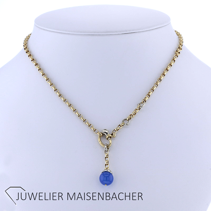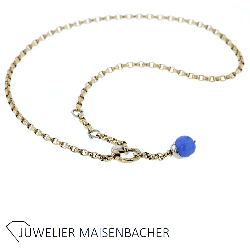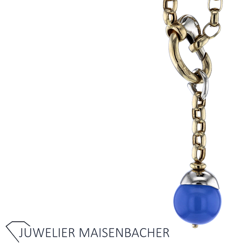 Ein besonderer Blickfang ist der hochwertige Achat-Anhänger. Der Anhänger misst ca. 3,2 cm in der Länge und etwa 6 mm in der Breite. Ergänzt wird er durch eine dekorative Achat-Kugel mit einem Durchmesser von ca. 10,1 mm. Der tiefblaue Stein setzt einen wunderschönen farblichen Akzent zum warmen Goldton der Kette und verleiht dem Schmuckstück eine exklusive und individuelle Note.