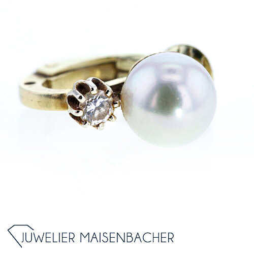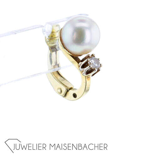 Klassische Ohrclips mit schöner Akoya-Zuchtperle und Diamantbesatz 585/- Gelbgold 2 Diamanten im Brillantschliff insgesamt ca. 0,14 ct. Farbe: Wesselton-Weiß (H) Reinheit: SI (sehr kleine Einschlüsse) wunderschöne Zuchtperle à 7,3 mm Tragelänge ca. 15,5mm Bruttogesamtgewicht: ca. 3,9 Gramm