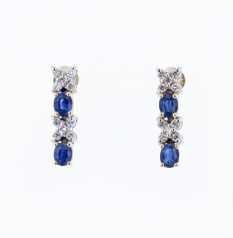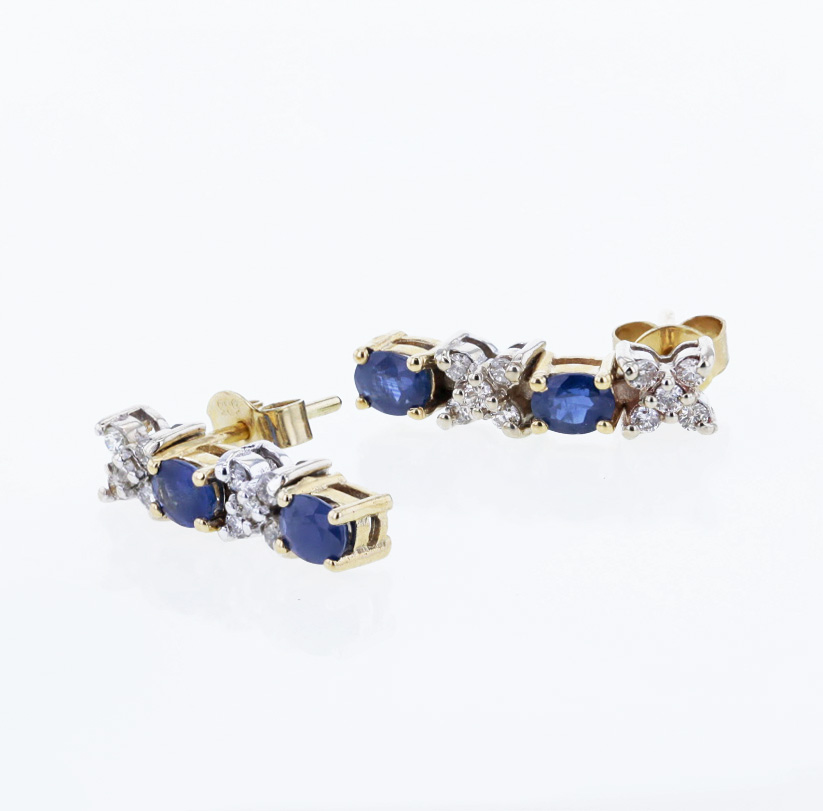 Ohrstecker Saphir und Brillant 585/- Gelbgold insgesamt: ca. 0.16ct. natürliche Diamanten und Saphire Farbe: Top Crystal (I) – Leicht Getönt (J) Reinheit: VS2-SI2 Tragelänge: ca. 1,6cm Bruttogesamtgewicht: 3,1 Gramm
