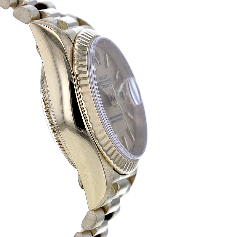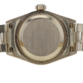Im Inneren arbeitet das bewährte Rolex Automatikwerk Kaliber 2135, ein Uhrwerk, das für Präzision, Zuverlässigkeit und klassische Rolex-Qualität steht. Mit einer Frequenz von 28.800 A/h und einer Gangreserve von ca. 48 Stunden bietet diese Damenuhr nicht nur stilistische Perfektion, sondern auch technische Substanz auf hohem Niveau. Die praktische Datumsanzeige rundet den eleganten Auftritt funktional ab.