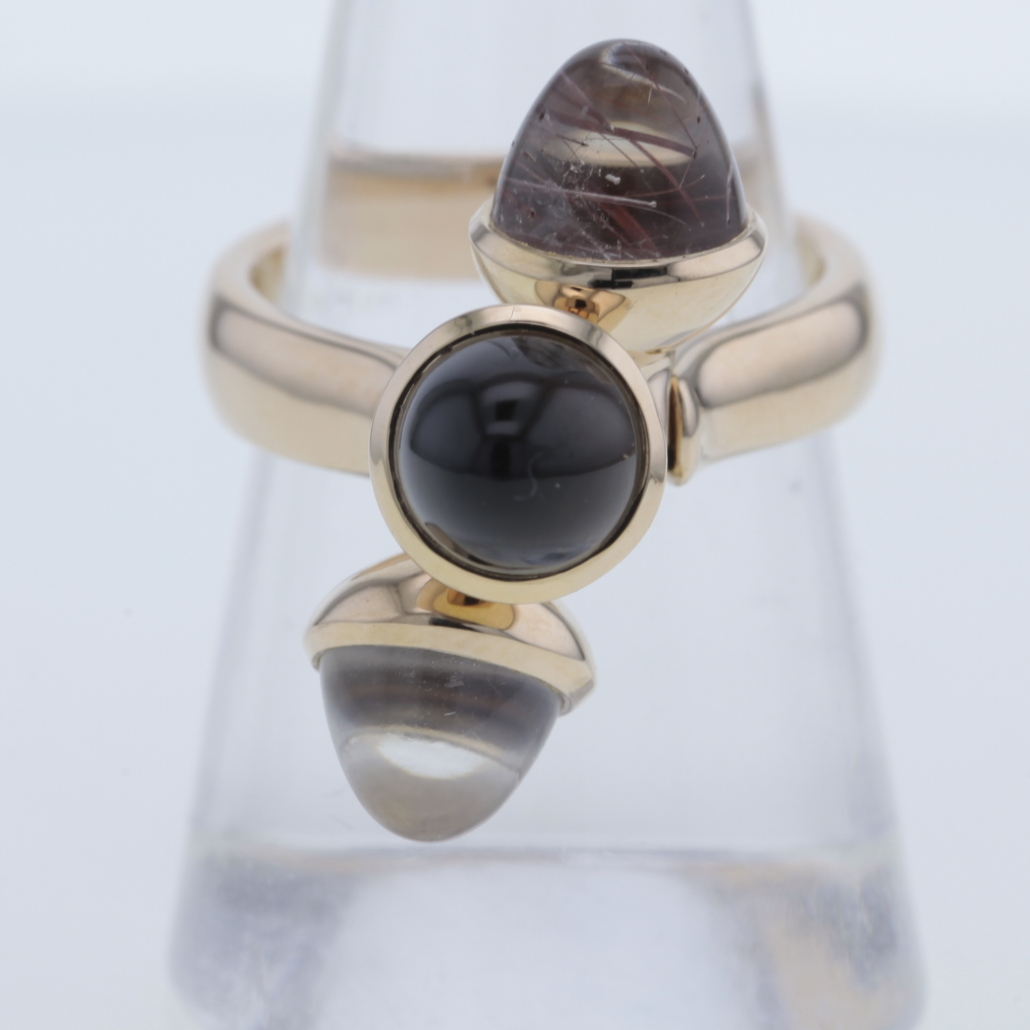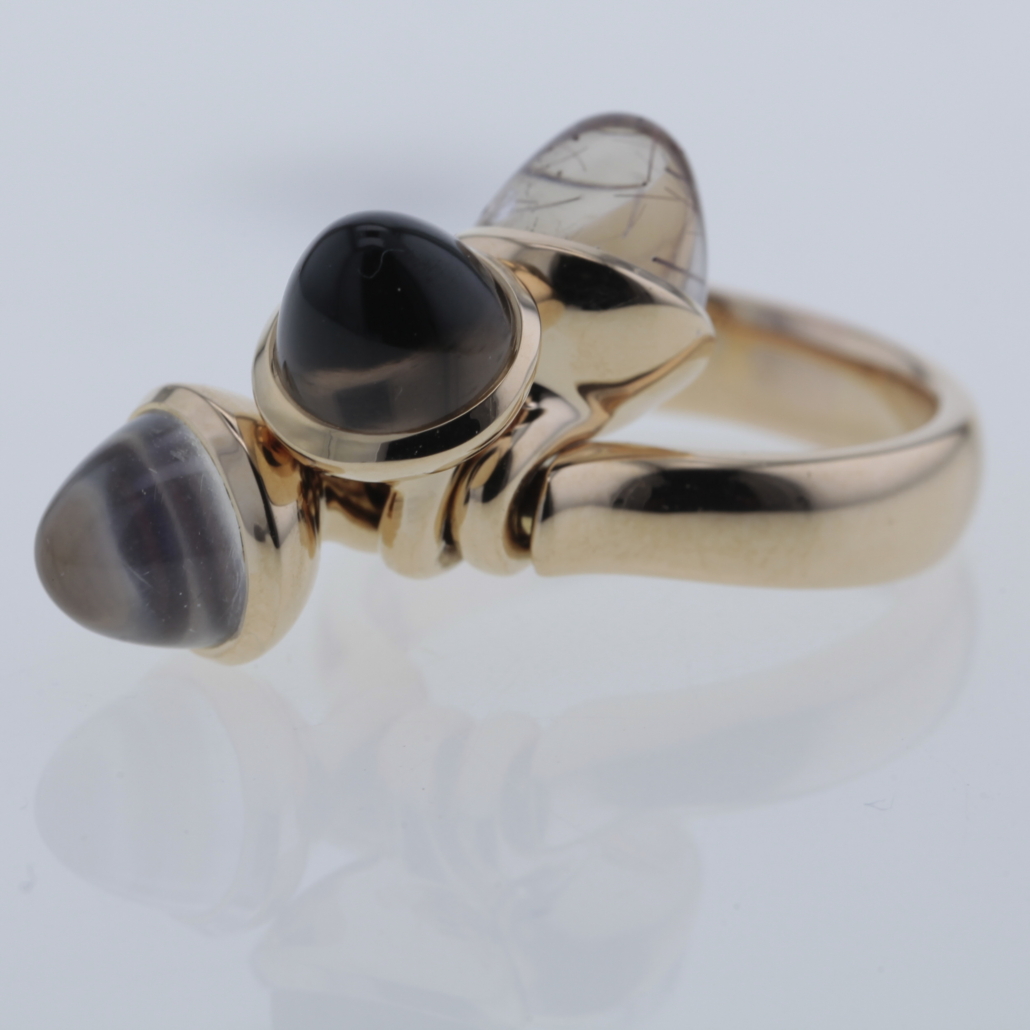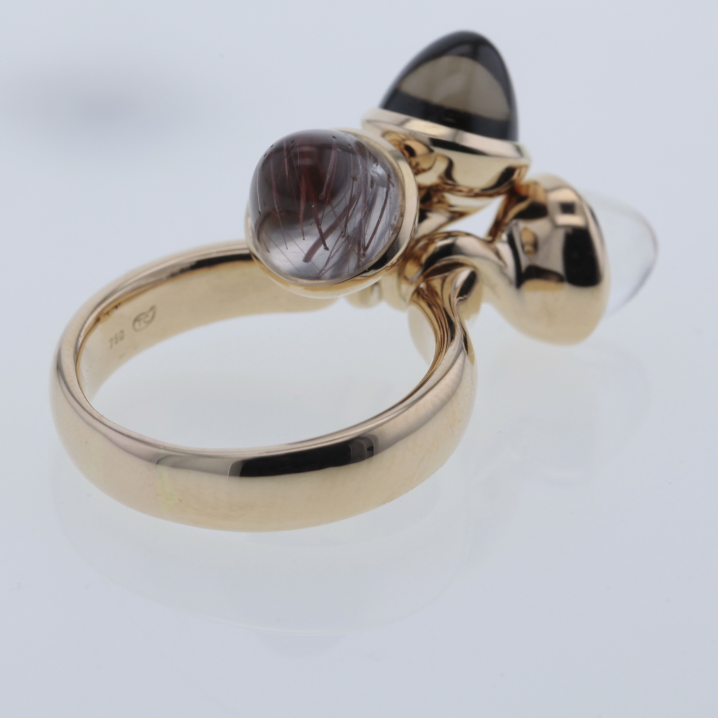 Tamara Comolli Markanter Mikado-Flamenco Ring mit gegliederten Edelsteinen Rutilquarz, Rauchquarz und grauer Mondstein in unverwechselbaren Kegelform Carbochon-Schliff Vielseitig und verspielt. 750/-Roségold Ringweite: 56 (Ã17,8) Maße Ringschiene: 4,5 x 1,8mm Maße Edelstein in Eichelform: ca. 9,4 x 9,3mm Bruttogesamtgewicht: 15,7 Gramm Im Lieferumfang erhalten Sie die original Etui von Tamara Comolli Haben Sie Fragen zu diesen exklusiven Mikado Ring von Tamara Comolli, rufen Sie uns gerne an oder schreiben uns eine Mail