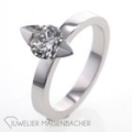 Dieses Schmuckstück ist ein Teil der Diamant.de Schmuckkollektion und ist entsprechend graviert. Die Form ist außergewöhnlich, dennoch schlicht und luxuriös. Der natürliche Diamant im Brillantschliff fällt als Solitaire dem Betrachter direkt ins Auge. Der Ring ist sehr feminin und bietet einen hohen Tragekomfort. Die Blicke und die Aufmerksamkeit anderer sind Ihnen mit diesem Ring sicher. 750/- Weißgold Farbe: Top Wesselton, Feines Weiß (G) Reinheit: VS2 Ringweite: 56 (à 17,8) Bruttogesamtgewicht: 6,5 Gramm Ein wunderschönes Geschenk nicht nur zu Weihnachten. Haben Sie Fragen zu diesem außergewöhnlichen Solitär-Ring, wir beraten Sie individuell und unverbindlich