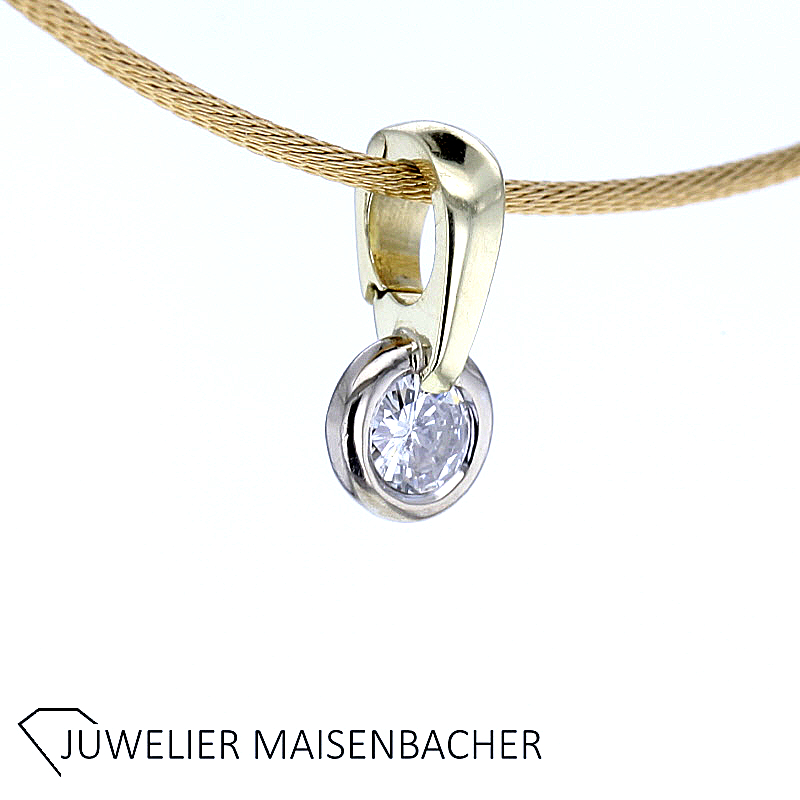 Insgesamt präsentiert sich dieser Solitäranhänger mit Brillant in 585er Bicolor-Gelb- und Weißgold als ein geschmackvolles Schmuckstück mit klassischer Eleganz und zeitloser Attraktivität. Ideal für Liebhaberinnen dezenter, hochwertiger Schmuckstücke mit feinem Diamantbesatz.