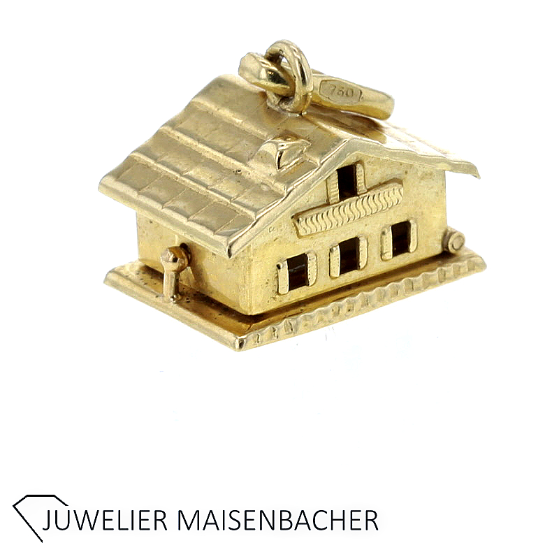Der Anhänger ist in Form eines kleinen Hauses gestaltet und überzeugt durch zahlreiche feine Details. Das strukturierte Dach, die dezent ausgearbeiteten Fenster sowie die kleine Hausfassade mit Tür verleihen dem Schmuckstück einen besonders plastischen und lebendigen Charakter. Durch diese sorgfältige Gestaltung wirkt der Anhänger wie eine kleine Miniatur eines Hauses und zieht sofort die Aufmerksamkeit auf sich.