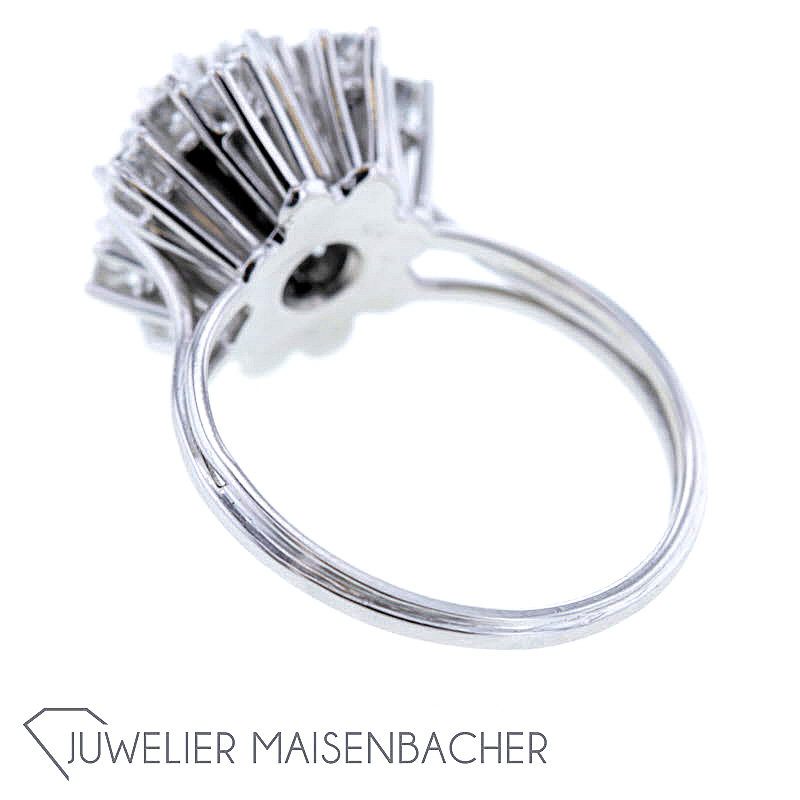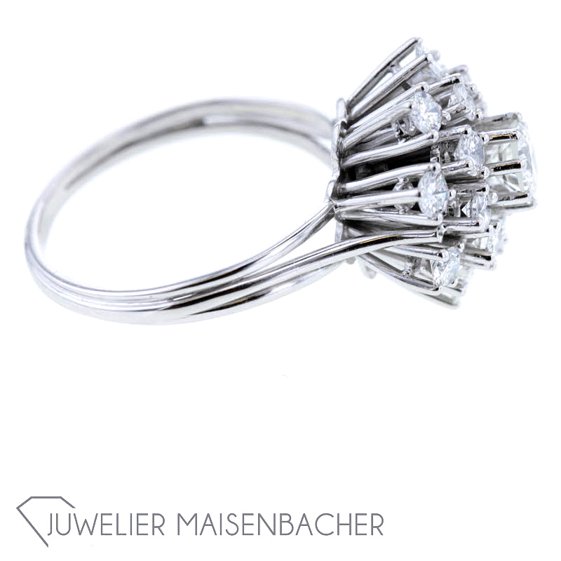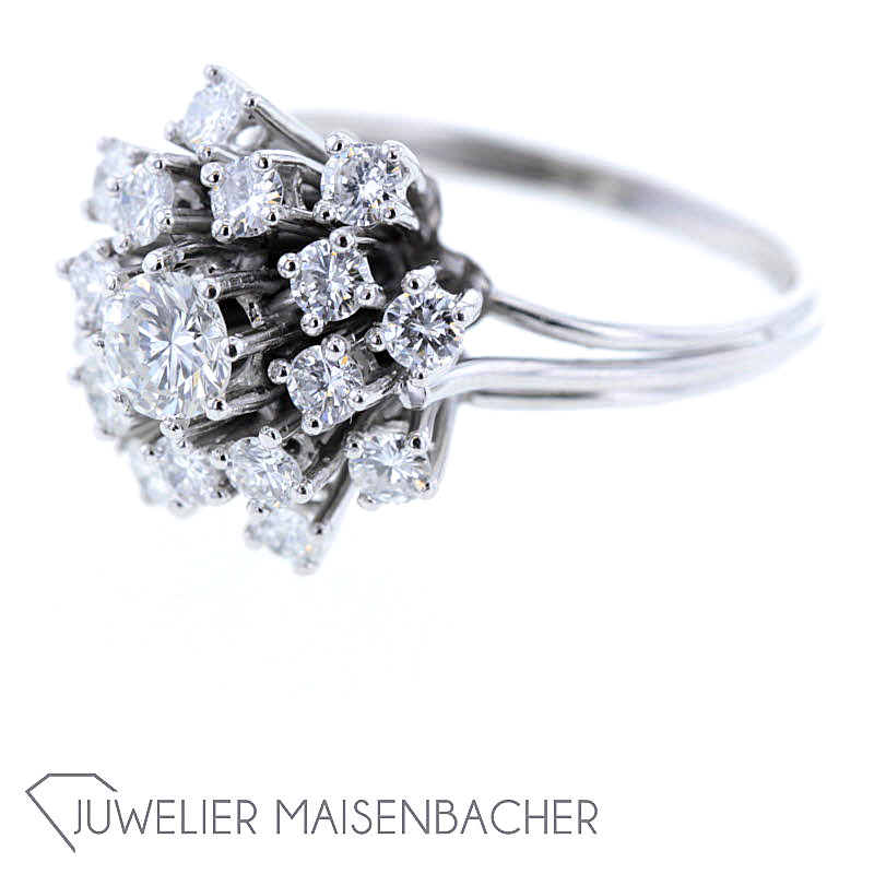 Wunderschöner Flower Brillantring mit 16 Diamanten im Brillantschliff 750/ Weißgold insgesamt ca 1,056 ct Farbe: Wesselton, weiß (H) Reinheit: VS1-VS2 750/ Weißgold Gewicht ca 6,82 Gramm Größe: 56 (Ã 17,8) Ringschiene unten gemessen: 1,88 mm Ring Höhe: ca 29,90 mm Blütenkopf ca 14,9 x 14,3