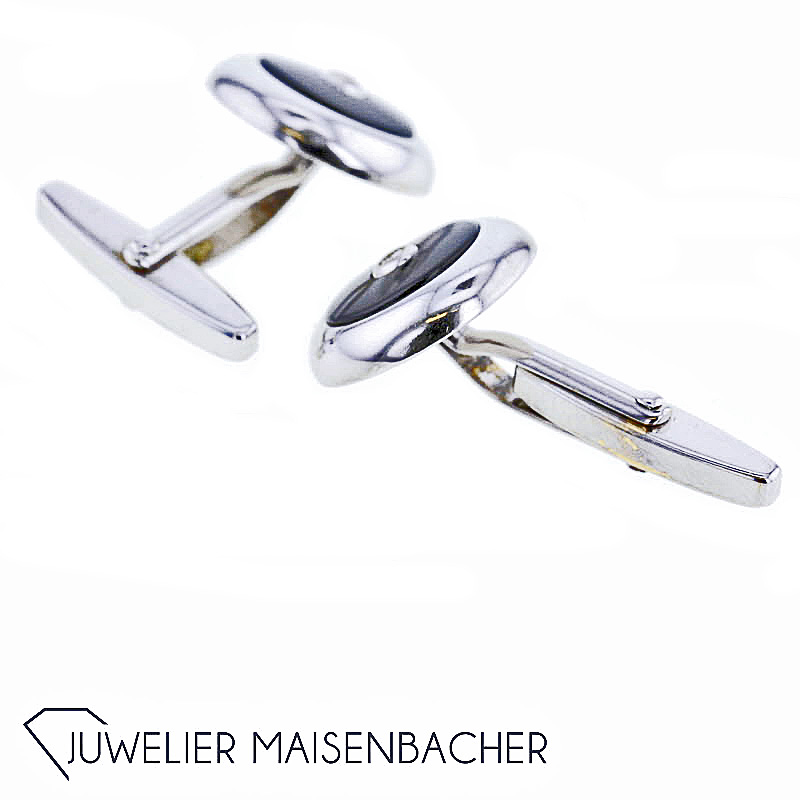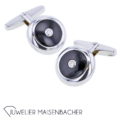 Zeitlose Unisex Onyx Manschettenknöpfe mit Brillanten 750/- Weissgold je1 Diamant im Brillantschliff insgesamt ca. 0,05 ct Farbe: Wesselton (H) Reinheit: SI 2 je 1 Onyx à ca. 11mm Maße: ca. 15,8 x 3,7 mm Länge: ca. 24,8mm Bruttogesamtgewicht: ca. 9,4 Gramm