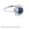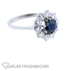 Zeitloser Ring mit Brillant und Saphir Gold 585/-Weißgold wunderschöner dunkler Saphir ca. 1 ct 10 natürliche Diamanten im Brillantschliff insgesamt ca. 0,90 ct Farbe: Wesselton, Weiß (H) Reinheit: VS Ringgröße 53,5 (Ã 17) Maße Ringschiene: 2,2mm x 1,5mm Bruttogesamtgewicht: ca. 3,7 Gramm Sie haben Fragen zum Safir-Brillantring, wir beraten Sie gerne individuell und unverbindlich.