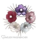 bunte Edelstein-Brosche *Blumenkranz* multicolor, graviert