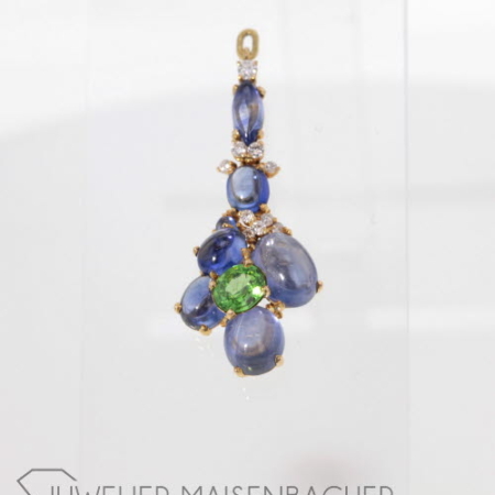 Tsavorith-Saphir-Anhänger mit Brillanten Gold