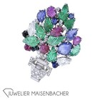 Blumenbukett Platin Brosche mit Diamanten und Edelsteinen