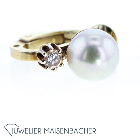 Ohrclip mit Akoya Zuchtperle und Brillant Gold